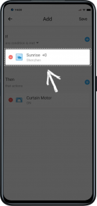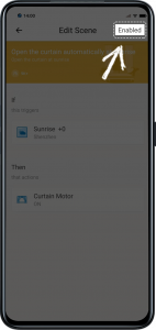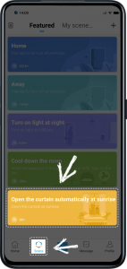 Step 1. Open eWeLink App, select Scene and tap Open the curtain autimatically at sunrise