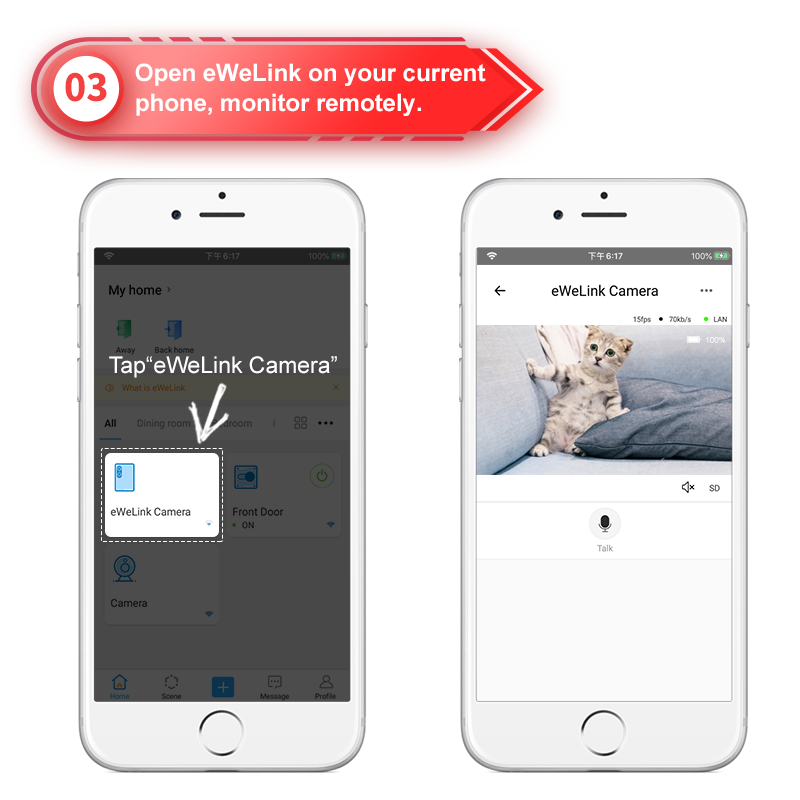 Put beside your sleeping baby, it becomes a baby monitor. Place it in your living room, you are ready to see your pet even at work. You may even fix it on your window to protect your house from burglary. Being compact and  flexible, the phone camera can be used in as many scenarios as you can think of. Wipe out the dusk on your old Android phone, install eWeLink Camera app and you are ready to view live video and chat for free.